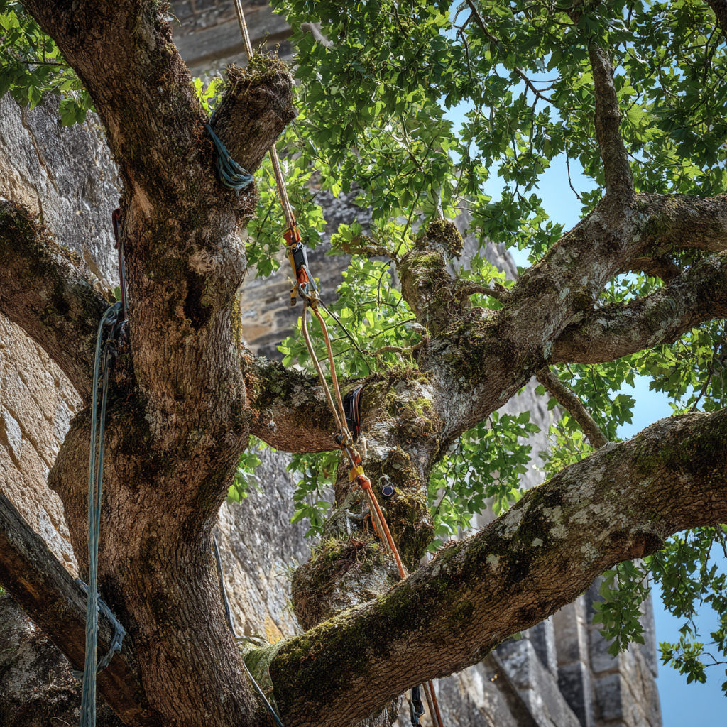 - Élagage sous câble pour un travail précis sur arbres difficiles d’accès
